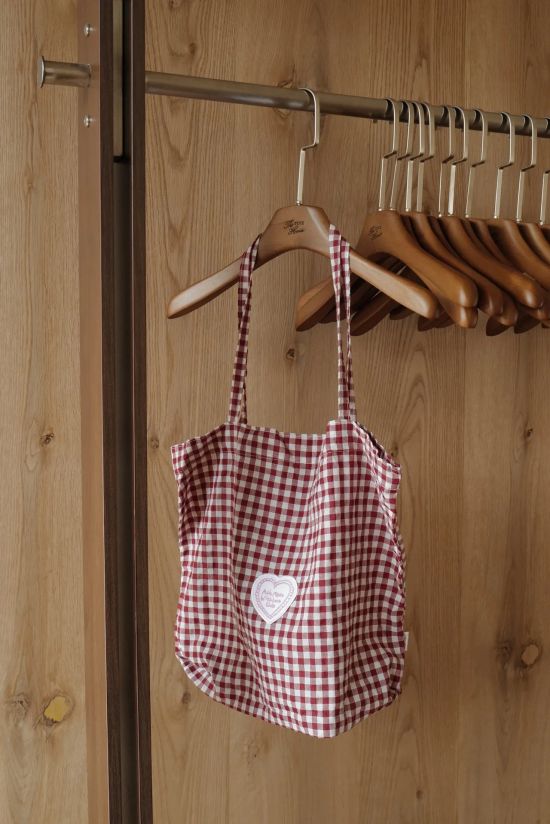 經典紅白格紋|搭配細緻愛心刺繡貼布 -